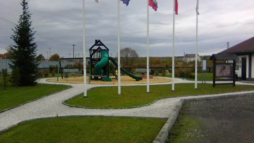 В коттеджном посёлке «Заповедный берег» приступили к установке бордюрного камня на территории зоны отдыха.